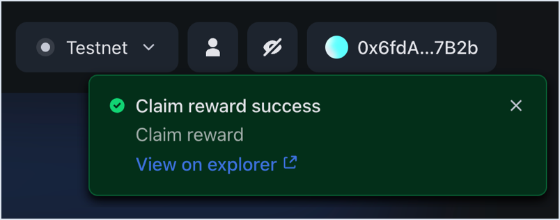 Open the Liquidity pool page, then select My positions, and then click Claim next to the pool you want to claim rewards from.